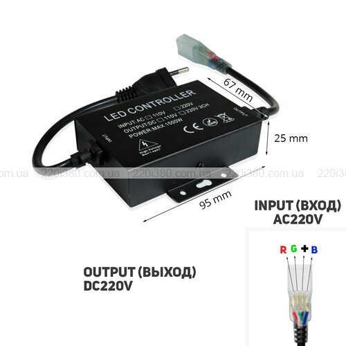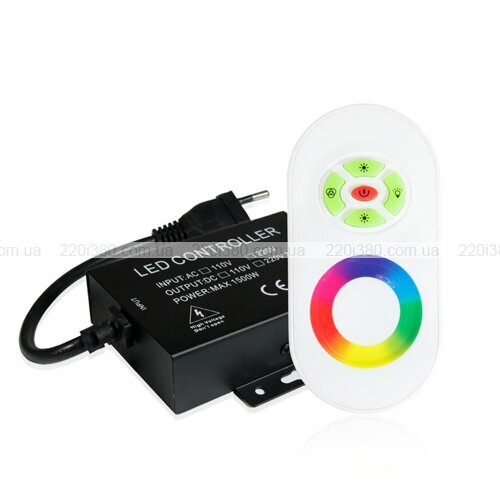 Контролер RGB 220В OEM 1500W-RF-5 застосовується для віддаленого управління режимами світіння багатобарвної світлодіодної стрічки. Потужність пристрою дорівнює 1500 Вт, сила струму на виході – 2,7 А (по 0,9 А на кожен з трьох каналів). Робоча напруга моделі – 220 В.
