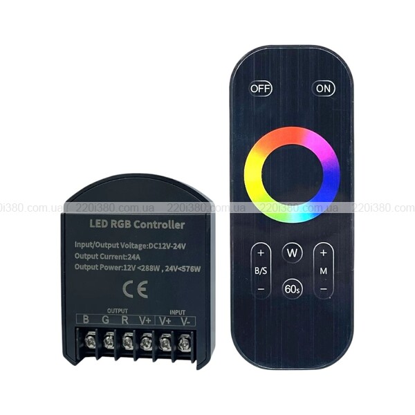 Контролер RGB OEM C-24-RF8-T-W – Використовується для керування кольоровою гамою, яскравісттю RGB-стрічками з живленням 12-24V.