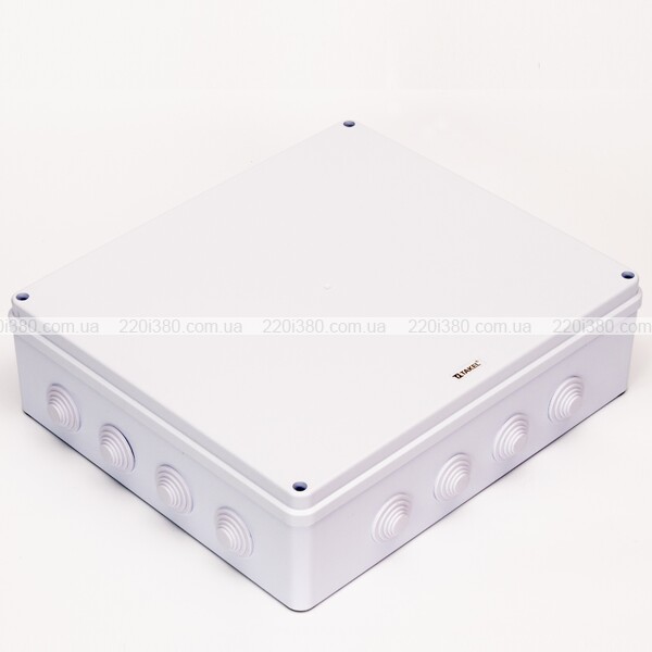 Призначення: для з'єднання і розгалуження електричних проводів і кабелю в умовах зовнішнього монтажу. Матеріал: АБС-пластик, ПВХ. Одиниця виміру (мін. норма відвантаження): штука. Робочі температури: від -30 до +60 °С. Температури монтажу: від -10 до +40 °С. Колір: світло-сірий. Якісний матеріал (АБС), стійкий до перепадів температур та інших впливів навколишнього середовища, забезпечує тривалий термін експлуатації коробки. М'які багаторівневі вводи-сальники з щільною посадкою в отвори збільшують ступінь герметизації внутрішнього простору коробки. Сальники міцно тримаються в отворах, люфт відсутній. Кожен ввід має п'ять варіантів діаметра отвору. Матеріал сальників залишається пластичним тривалий час. Ущільнювальна гумка між корпусом і кришкою по всьому периметру коробки значно збільшує ступінь пило і волого захисту.Кришка фіксується до корпусу коробки за допомогою засувок, що забезпечує простий і швидкий монтаж. Коробка має невеликі зовнішні виступи на дні нижньої частини корпусу для дистанціювання від поверхні, до якої вони монтуються. Спеціальні виступи на внутрішній поверхні дна коробки, до яких можна прикручувати клемні колодки або шини нульові. Коробка поставляється в індивідуальній упаковці (полімерна плівка), що допомагає забезпечити належний зовнішній вигляд виробу до моменту установлення.
