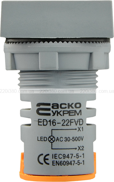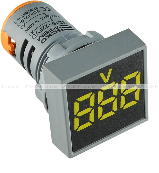 Квадратний цифровий вимірювач напруги ED16-22FVD 30-500В АС (жовтий)