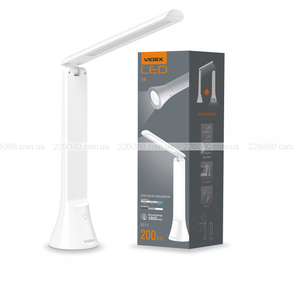 Настільна лампа VIDEX відмінно підійде для різного роду завдань, наприклад, для освітлення робочої зони столу, клавіатури, читання, письма, шиття, манікюру та інше. Лампа здатна працювати без підключення до побутової мережі живлення за рахунок вбудованої акумуляторної батареї (1800мА.год). Невеликі габарити дозволяють розміщувати лампу не займаючи зайвого місця. Робочий кут нахилу дає змогу зручно керувати лампою та спрямовувати світло згідно потреби. Завдяки вбудованому акумулятору може працювати до 6 годин в автономному режимі.