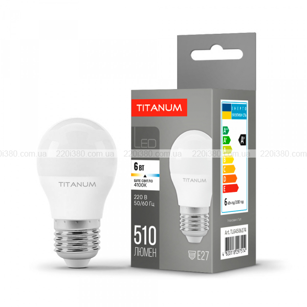 LED лампа TITANUM G45 6W E27 4100K - високотехнологічне джерело світла. Забезпечує рівний світловий потік і максимальну потужність з першої секунди роботи. Призначена для загального освітлення приміщень, торговельних залів і вітрин, промислових підприємств. Ідеальна для декоративного, місцевого і направленного освітлення. Використовується у всіх типах побутових світильників. Має тривалий термін експлуатації і високу стійкість до навантажень під час вмикання і вимикання.