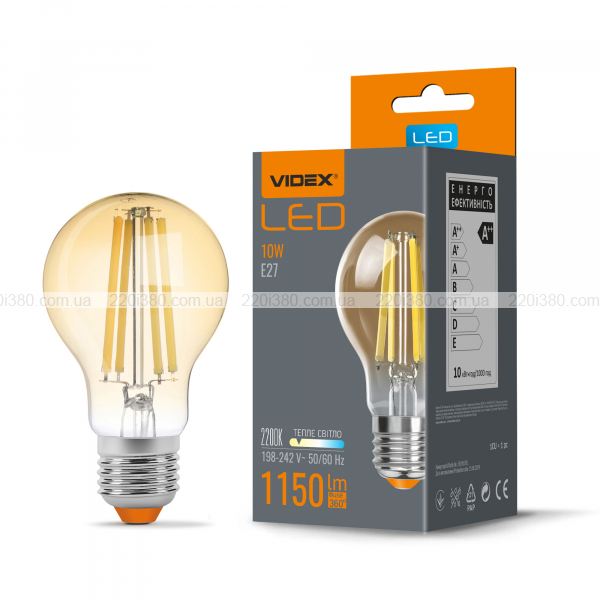 LED лампа VIDEX Filament A60FA 10W E27 2200K бронза