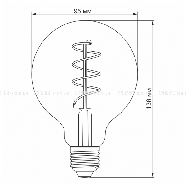 LED лампа VIDEX Filament G95FGD 4W E27 2100K дімерна графіт