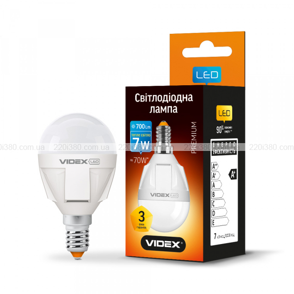 LED лампа VIDEX PREMIUM G45 7W E14 3000K