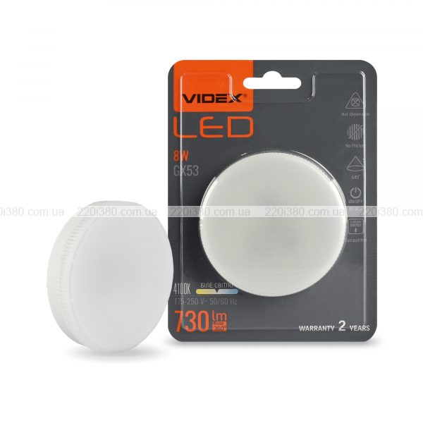 LED лампа VIDEX GX53 8W 4100K 220V - це сучасне інноваційне рішення для освітлення вашого простору. Використовується в сучасних світильниках як для загального освітлення так і декоративного, інтер'єрного та акцентного. Це все залежить від дизайнерських та особистих смакових якостей споживача. З її потужністю 8W і яскравістю 730 Lm, вона забезпечує якісне та яскраве світло, при цьому споживаючи мінімум енергії.
