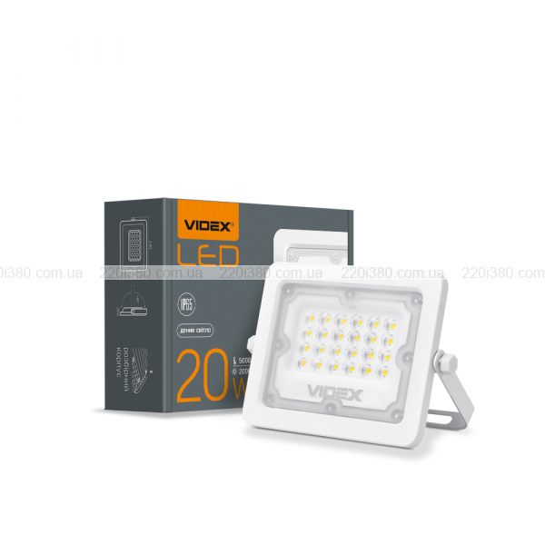 LED прожектор VIDEX 20W 5000K - високотехнологічне джерело світла. Забезпечує рівний світловий потік і максимальну потужність з першої секунди роботи. Цей прожектор можливо використовувати для освітлення і підсвічування рекламних вивісок, конструкцій, автостоянок, гаражів, зовнішнього підсвічування будівель і споруд, спортивних майданчиків, стадіонів, промислових об'єктів, створення світлових ефектів. Його розміри становлять усього 140х103х18.5мм, оновлена версія має габарити 127х103х19мм.