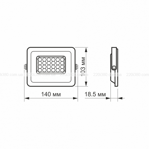 Сила світлового потоку - 100Лм/Вт, а сумарний світловий потік прожектора становить 2000Лм.