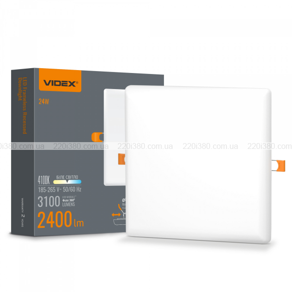 LED світильник безрамковий квадратний VIDEX 24W 4100K