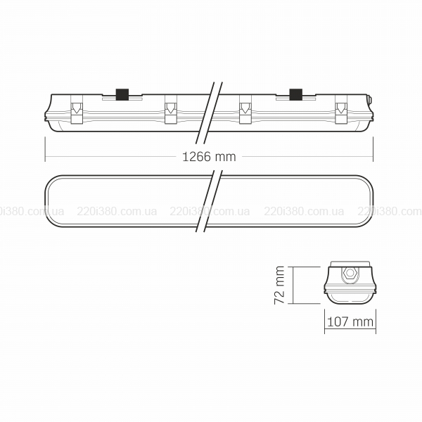 Герметичний корпус із високоякісного пластику робить даний світильник захищеним від пилу, вологи, ударів. Світильник лінійний володіє високим захистом від ударів IK08 і високим ступенем пиле - та вологозахисту IP65. Робоча напруга 220-240В, 50/60Гц. Гарантія - 5 років. Габаритні розміри складають - 1266х107х72мм.Світлодіодний лінійний світильник не містить ртуті. Не підлягає утилізації у вигляді побутових відходів. При виготовленні використовуються тільки безпечні матеріали.