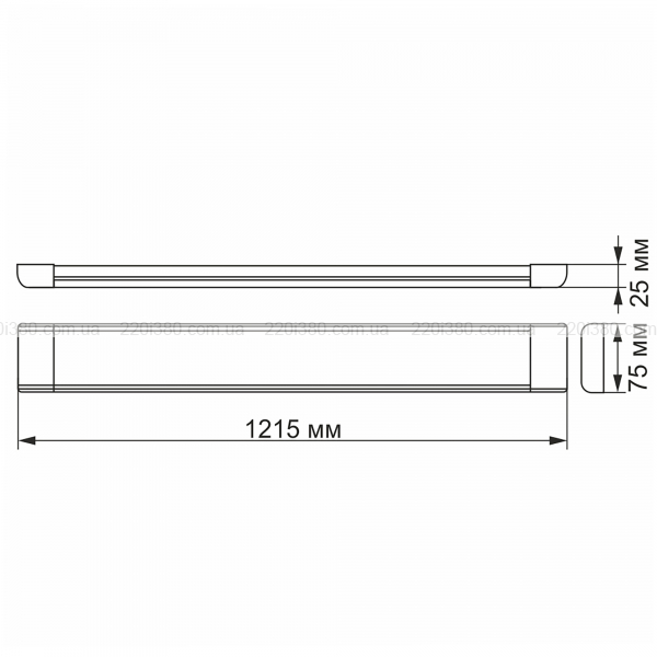 Світлодіодний лінійний світильник не містить ртуті. Алюмінєвий корпус зі збільшеною товщиною допомагає сповільнити деградацію світлодіодів та значно продовжує термін служби світильника. Світлодіоди всередині розміщені під кутом, що дозволяє досягти рівномірного розподілення світла без темних зон. Не підлягає утилізації у вигляді побутових відходів. Всі світильники відрізняються своєю екологічністю. Його розміри становлять 1215x75x25мм.