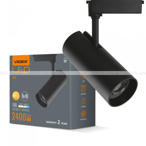 Особливістю трекових світильників VIDEX є високий показник індексу передачі кольору. Максимально чітке відображення природних кольорів предметів, які висвітлюються даними світильниками. Колірна температура - 4100К (біле світло). Кут розсіювання світла - 36°.