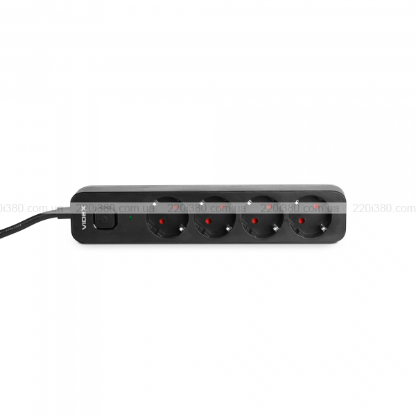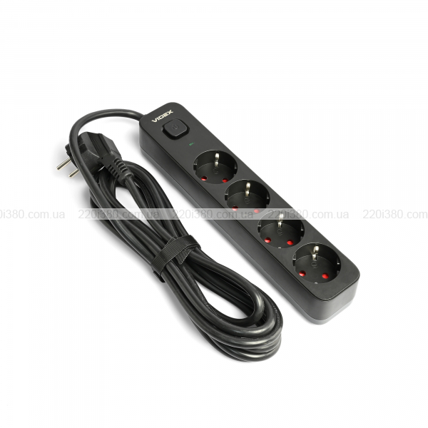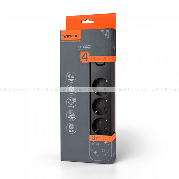 Мережевий подовжувач VIDEX ONCORD з/з 4п 3м (3x1.5мм) з кнопкою Black