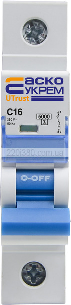 Модульний автоматичний вимикач UTrust 1р 16А С 6kА
