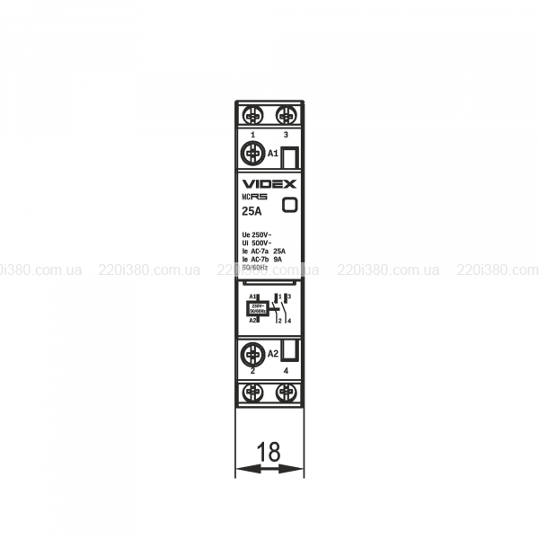 Модульний контактор 2п 25А 2НВ VF-RS-MC2O-25 VIDEX RESIST