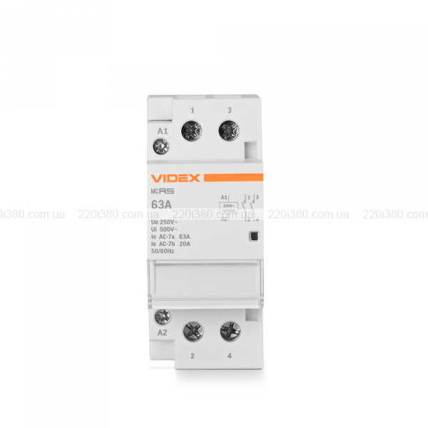 Модульний контактор VIDEX RESIST. Контактор - це електрично-керований перемикач, який використовується для перемикання електричного кола при створенні або розриві з’єднання між джерелом живлення та навантаженням. Призначений для безпосереднього підключення до сильнострумових пристроїв. Використовується для автоматизації процесів в будівлях та спорудах для керування електродвигунами, вентиляцією, освітленням, опаленням та іншими видами навантаження. Не призначений для виконання функцій захисту від коротких замикань. Розрахований на використання не навченими спеціально людьми і не вимагає технічного обслуговування.