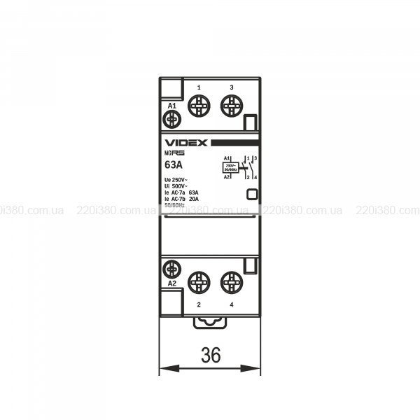Модульний контактор 2п 63А 2НВ VF-RS-MC2O-63 VIDEX RESIST