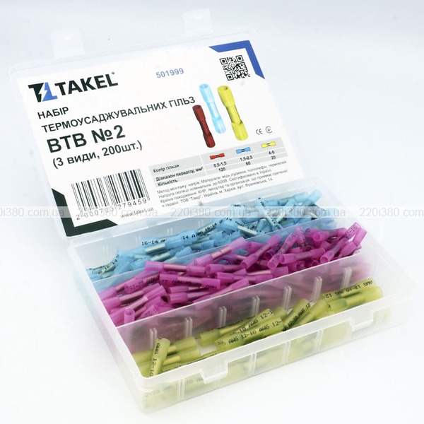 | Найменування скорочене: | Набір термоусаджувальних гільз BTB №2 (3 види, 200шт) |
