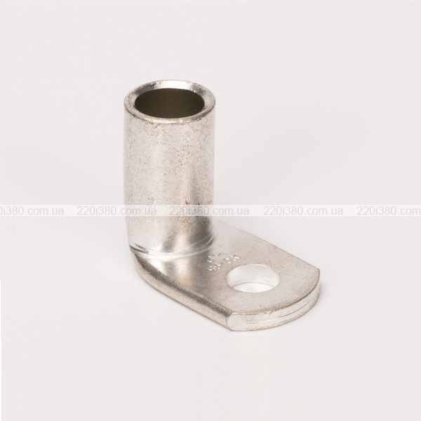Тип наконечника: кутовий наконечник для силового кабелю (під кутом 90°).Призначення: для окінцювання мідних проводів і кабелів та приєднання їх до контактних груп під кутом 90°.Матеріал: мідь марки М1.Покриття: олово + вісмут.Сертифікація в Україні: добровільна сертифікація згідно вимог ДСТУ EN 60947-1.Метод монтажу: обпресовування.Одиниця виміру (мін. норма відвантаження): штука.Оптимальна конструкція, що забезпечує кутовому наконечнику стійкість до можливих деформацій під впливом механічного навантаження з боку кабелю.Конструкція контактної площадки забезпечує велику площу контакту, і при цьому дозволяє застосовувати їх в контактних групах з обмеженим простором навколо болтів.Поєднання високих показників пластичності і механічної міцності міді марки М1 полегшує процес обпресовування і забезпечує надійну фіксацію наконечника на проводі.Висока електропровідність міді і покриття на основі олова.Внутрішній діаметр хвостовиків розрахований для окінцювання мідних провідників 1, 2 і 3 класів гнучкості.