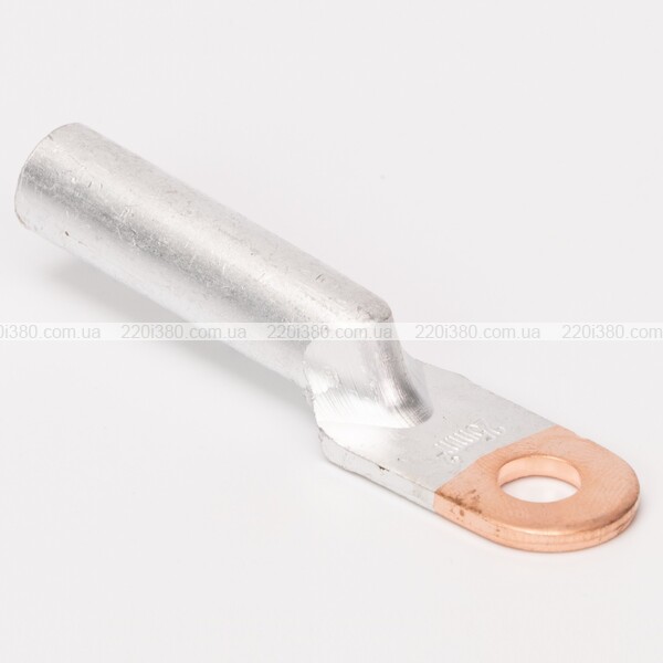 Тип наконечника: DTL (наконечники з подовженою алюмінієвою хвостовою частиною і площинкою, цілком виготовленою з міді).Призначення: для окінцювання алюмінієвих проводів і кабелю.Матеріал: алюміній (аналог марки АД-1), мідь.Сертифікація в Україні: добровільна сертифікація згідно вимог ДСТУ EN 60947-1.Метод монтажу: обпресовування. Одиниця виміру (мін. норма відвантаження): штука.Оптимальні геометричні параметри для можливості застосування в різних галузях промисловості.Конструкція контактної площинки забезпечує більшу площу контакту, і при цьому дозволяє застосовувати їх в контактних групах з обмеженим місцем навколо болтів.Контактна площинка цілком виготовлена з міді.Подовжена хвостова частина для надійної фіксації наконечника на проводі.Мідь і алюміній з'єднані методом контактного зварення, що забезпечує надійну конструкцію наконечника і відсутність нагріву в місці з'єднання.