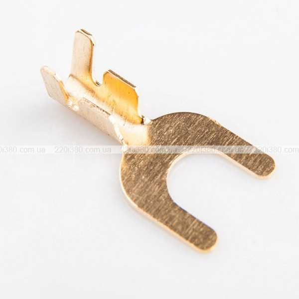 Тип наконечника: вилковий без ізоляції розрізний.Призначення: для окінцювання багатодротяних провідників і приєднання їх до різних пристроїв, в тих випадках, коли утруднено застосування кільцевих наконечників.Сертифікація в Україні: добровільна сертифікація згідно вимог ДСТУ EN 60947-1.Метод монтажу: обпресовування.Температура експлуатації: від -40 до + 90 С°.Напруга номінальна: 400В.Неізольовані вилкові наконечники (в порівнянні з ізольованими) можуть застосовуватися в більш широкому діапазоні температур, як знижених, так і підвищених.Двоконтурне обпресовування наконечників. Наконечник латунний розрізний в хвостовій частині має два контури з різним рівнем висоти прапорців. В контур з низьким рівнем вводиться зачищена ділянку проводу, а в контур з високим рівнем провід з ізоляцією.Наконечники прапорцеві (розрізні) мають підвищені вимоги до правильного підбору «складових коректного обпресування» (тип і розмір матриці інструменту, реальні розміри проводу і наконечника).Матриці інструменту для латунних наконечників мають двоконтурну конструкцію і односторонню спрямованість. Завжди потрібно дотримуватися спрямованості і поєднувати різні за рівнем контури хвостової частини наконечника і матриці інструменту.
