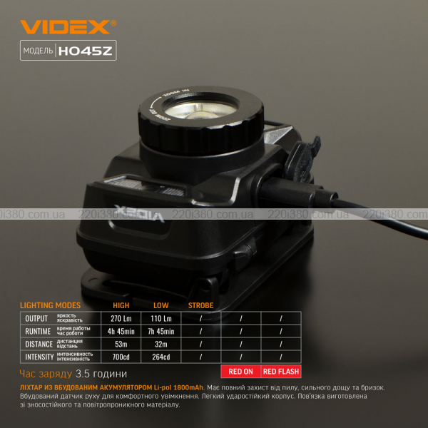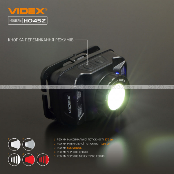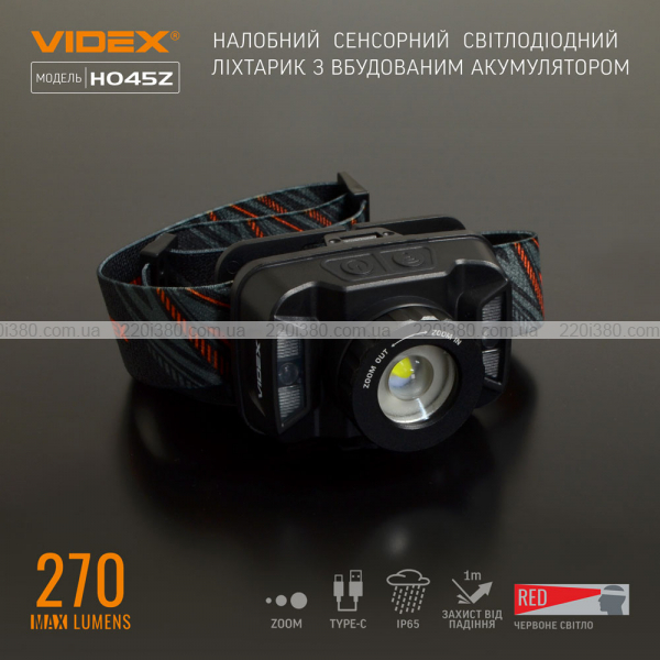 Налобний світлодіодний ліхтарик VIDEX VLF-H045Z 270Lm 5000K