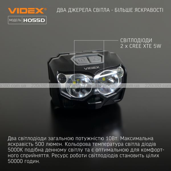Налобний світлодіодний ліхтарик VIDEX VLF-H055D 500Lm 5000K