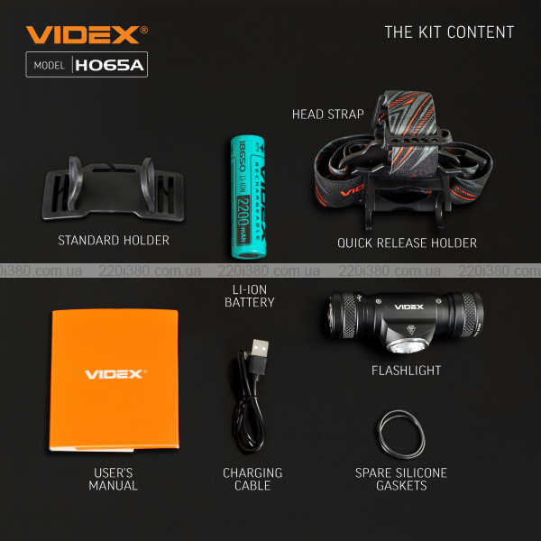 | Комплектація: | Акумулятор, 2х тримача кліпса, шнур на руку, кріплення на голову, зарядний кабель, запасні ущільнювачі, документація |