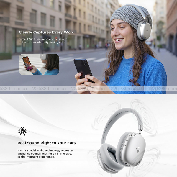 Навушники накладні бездротові HAVIT H670BT "SPACE S1" ANC Silver