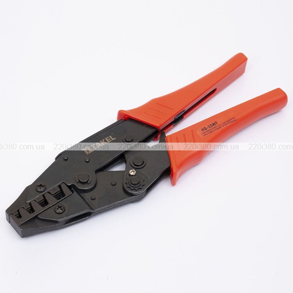 Інструмент для втулкових наконечників з найбільшим діапазоном обтиску в лінійці (до 35мм?) має просту і надійну конструкцію.