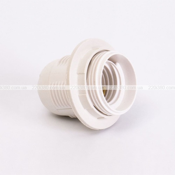 | Найменування скорочене: | Патрон пластиковий Е27 з гайкою, білий |