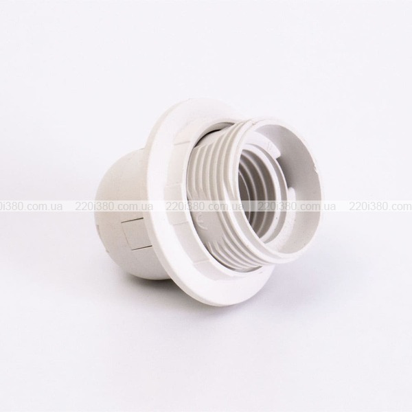 | Найменування скорочене: | Патрон пластиковий Е27 зі стопором та з гайкою, білий |
