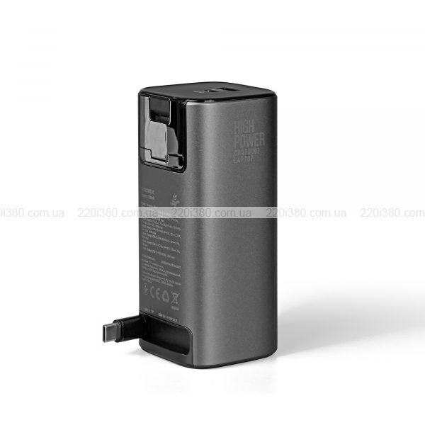 | Вихідна напруга: | USB-A: DC 5V/3A, 9V/3A, 10V/2.25A, 12V/2.5A (30W); USB-C 1/2: DC 5V-15V/3A, 20V/5A (PD100W) |