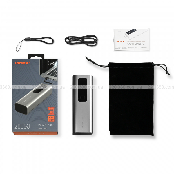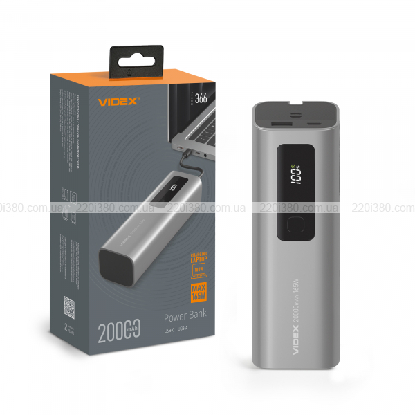 Павербанк 20000mAh VIDEX VPB-366 165W PD100W +Display