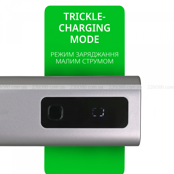 2) Режим заряджання малим струмом: дуже корисно для пристроїв з низьким енергоспоживанням. Для активації даного режиму натисніть та утримуйте кнопку живлення на корпусі повербанка протягом 2 секунд. В результаті з’явиться візуальна підказка у вигляді стрічки, яка бігатиме по колу, що означатиме входження в режим заряджання малим струмом. Щоб вийти з цього режиму, повторно утримуйте цю кнопку протягом 2 секунд.