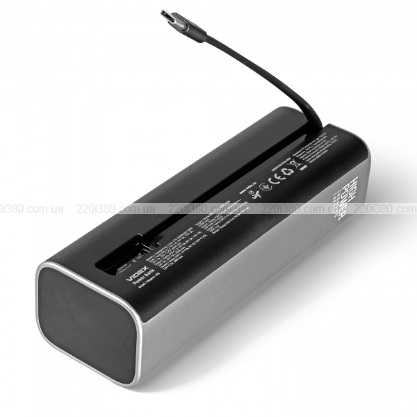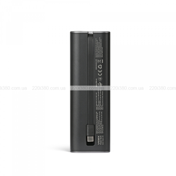 Power Bank VIDEX VPB-366 20000mAh 165W – повербанк з високою потужністю і надшвидкою зарядкою. Ємність становить 20000mAh, а максимальна вихідна потужність - 165W. Акумулятор оснащений літій-іонною батареєю 3.7V 74Wh, що дозволяє заряджати телефони, ноутбуки, планшети та інші гаджети з високою швидкістю завдяки підтримці технології Power Delivery (PD) до 100W.