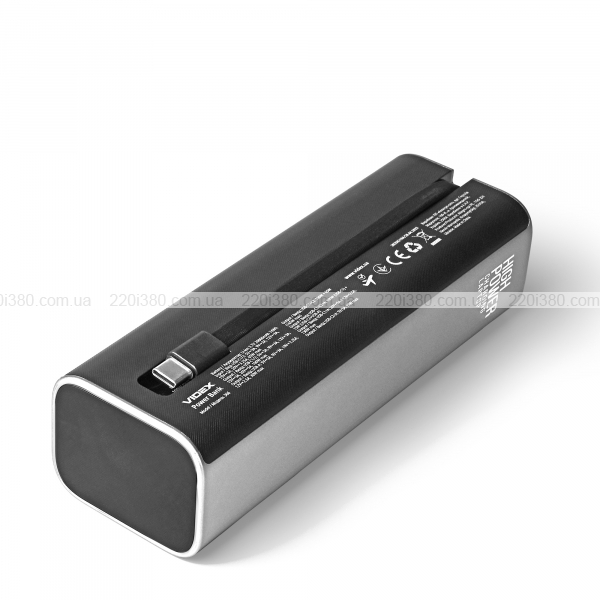 Повербанк має роз’єм USB-C, USB-A та вбудований USB-C кабель, який надійно фіксується в спеціально відведеному для нього місці, чим забезпечує охайний вигляд та компактність. Заряджається від вбудованого USB-C кабелю. Гарантійний термін – 2 роки.