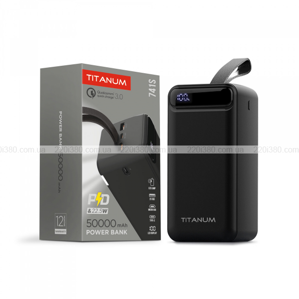 Павербанк 50000mAh TITANUM 741S 22.5W Black