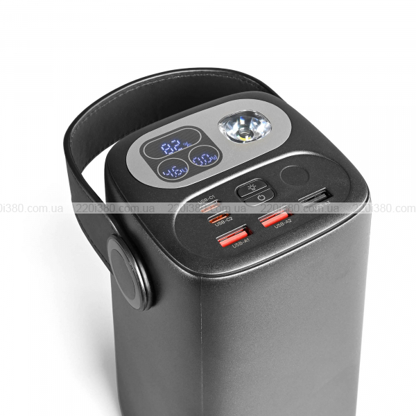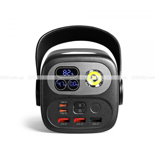 | Вихідна напруга: | USB-A 1/2: DC 5-10V/2.25A, 5V/3A, 9V/2A, 12V/1.5A (22.5W); USB-C 1/2: DC 5V/3A, 9V/3A, 12V/3A, 15V/3A, 20V/5A (PD100W); USB-A3: DC 5V/2A |