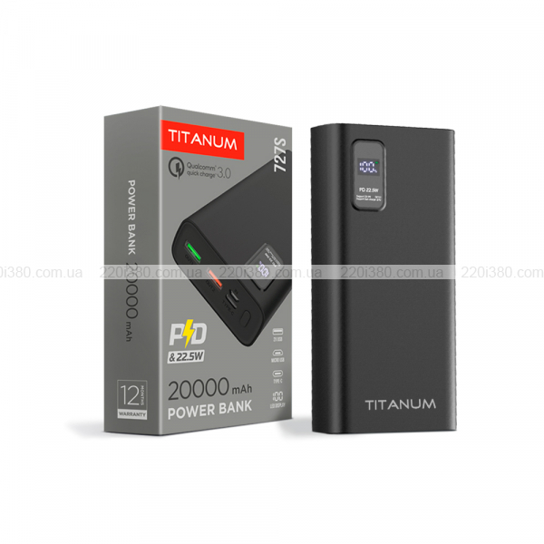 Павербанк TITANUM 727S 20000mAh 22.5W Black