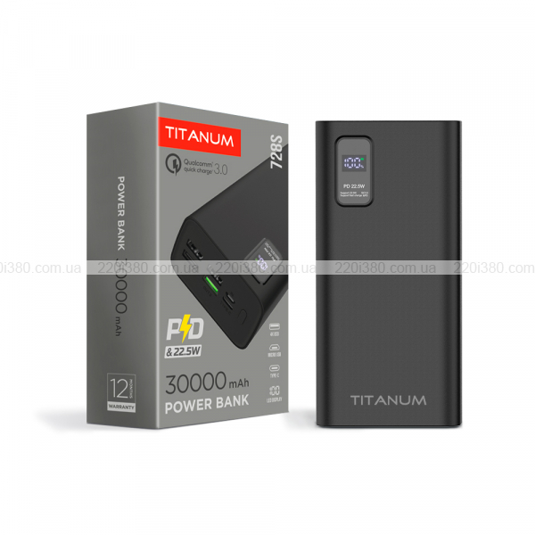 Павербанк TITANUM 728S 30000mAh 22.5W Black