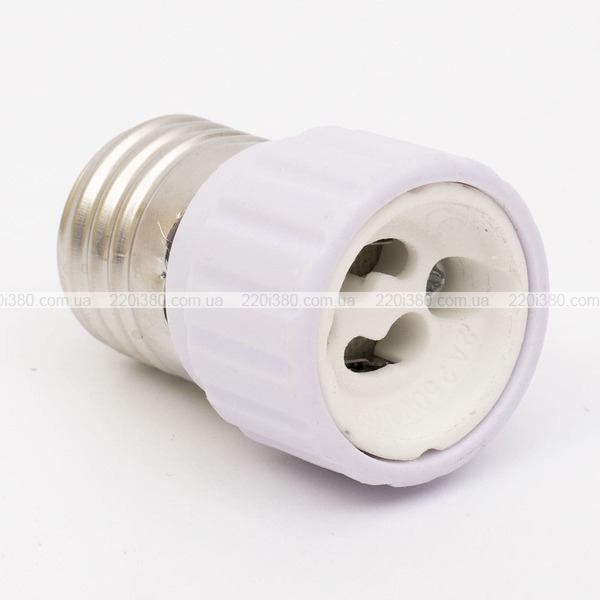 | Найменування скорочене: | Перехідник пластиковий E27-GU10, білий |
