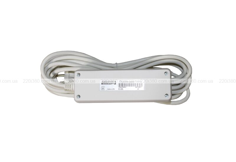 Подовжувач побутовий типу П35W 3 місця 2Р/ 5 метрів 2х1мм2 б/з товарного знаку Techno Systems (далі - подовжувач) призначений для підключення кількох електричних споживачів до однофазної електричної мережі напругою 230 В частоти 50 Гц.