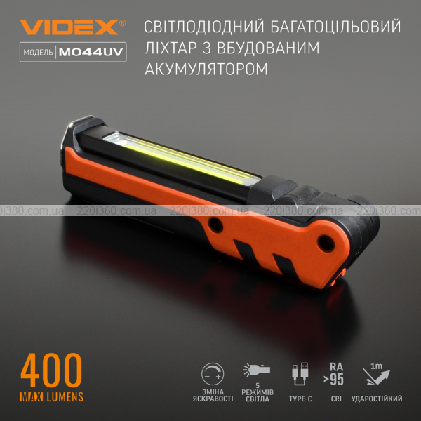 Портативний багатофункціональний ліхтарик VIDEX VLF-M044UV 400Lm 4000K