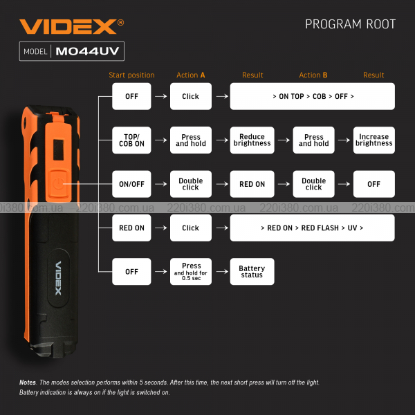 Портативний багатофункціональний ліхтарик VIDEX VLF-M044UV використання багатоцільове, завдяки різноманітності функціоналу ліхтарика. Використовують переважно в темний час доби або в приміщеннях без освітлення.