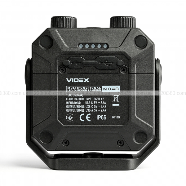 Наведені вище характеристики базуються на лабораторних випробуваннях з використанням наявних акумуляторів VIDEX Li-Ion 18650 ємністю 2200мАг за температури 21±3°C та вологості 50-80%. Фактична продуктивність може відрізнятися залежно від середовища та типу використовуваних акумуляторів.