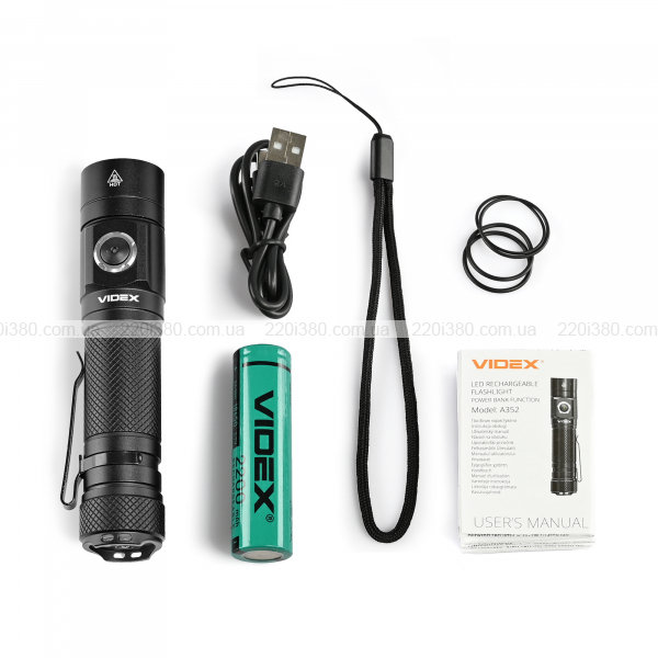 Портативний світлодіодний ліхтарик VIDEX VLF-A352 600Lm 5000K призначений для індивідуального використання в темний час доби або в приміщеннях без освітлення. Основними показниками є герметичність, надійний корпус, дальність світла. Дозволяє обрати необхідний режим роботи. Використовується шнур для ліхтаря, що забезпечує зручне користування і транспортування. В комплект також йде кліпса, за допомогою якої ліхтарик можна носити на рюкзаку, ремені, бейсболці та інших місцях, де це можливо. Особливістю даної моделі є наявність виходу USB-A (5В, 1А) на корпусі ліхтаря для підзарядки телефону та інших гаджетів в екстрених випадках за потреби.