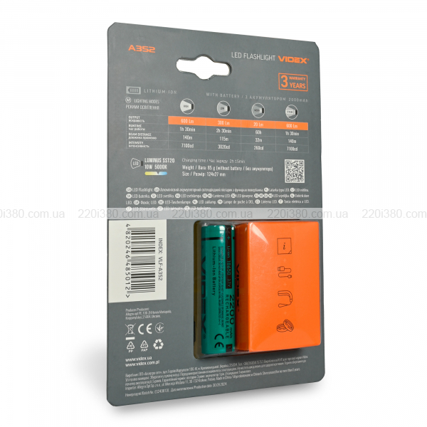 Портативний світлодіодний ліхтарик VIDEX VLF-A352 600Lm 5000K