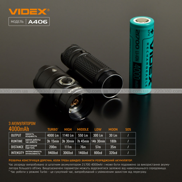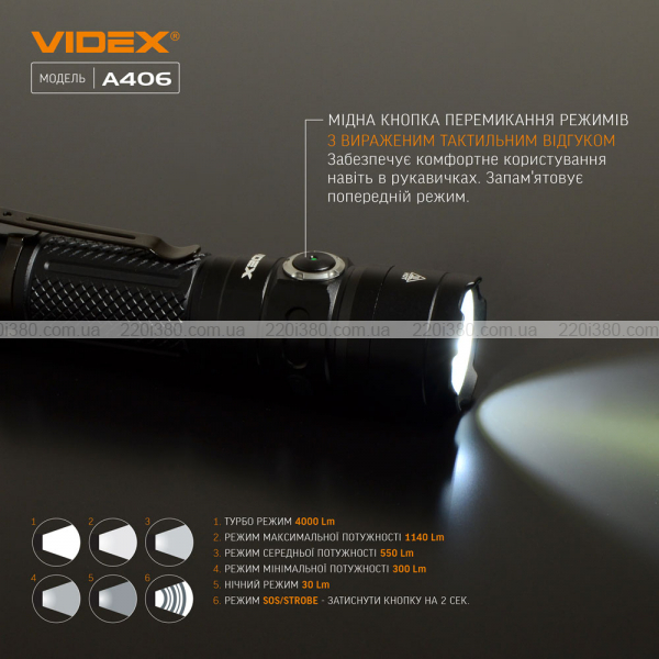 Портативний світлодіодний ліхтарик VIDEX VLF-A406 4000Lm 6500K