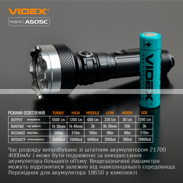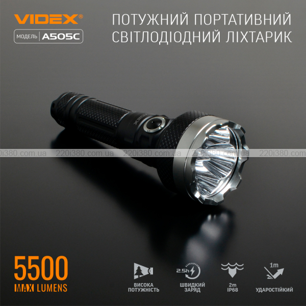 Портативний світлодіодний ліхтарик VIDEX VLF-A505C 5500Lm 5000K